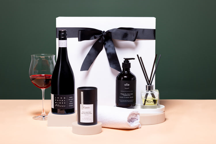 The Heaven Scent gift box offers a sensory journey designed to enhance any living space. It includes a hand-crafted Olieve and Olie diffuser with natural essences and fresh fragrance, accompanied by the soft glow of a beautifully scented soy candle. The set also features a hand & body wash and a hand & body cream gift set, all formulated with natural ingredients on the Mornington Peninsula. A beautifully designed ceramic tray serves as the ideal complement to this collection.