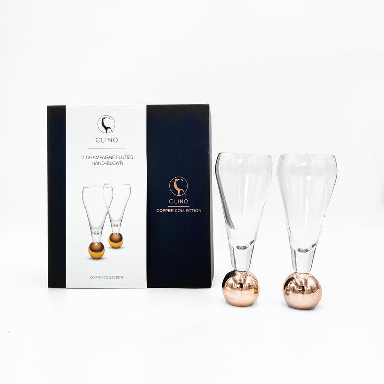Raise a toast in style with these fabulous champagne glasses by CLINQ! Featuring a chic copper ball base that adds a pop of personality, they're not just glasses; they're a celebration waiting to happen. Perfect for clinking your way through life's milestones - birthdays, weddings, or just because it's Friday! These contemporary beauties combine luxury with a playful twist. Sip in sophistication and let the bubbly flow whilst you revel in the moment, because every celebration deserves a touch of glamour! Cheers to that!