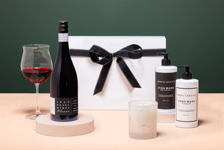 The Monochrome Magic gift box is a sophisticated and thoughtful choice designed to delight someone who appreciates the classic charm of black and white.  Let’s start with John Duval and the Plexus Red.  John Duval is an internationally renowned wine maker and was only one of three people entrusted making the Penfold Grange. The Plexus Red is an intricate blend of shiraz, grenache and mataro. Enjoy this delicious drop accompanied by the soft glow of a beautifully scented Olieve an Olie soy candle.  The monochrome magic continues with a BB Basic nectarine and mint hand wash and a BB kitchen wash that smells just like a mojito cocktail!
